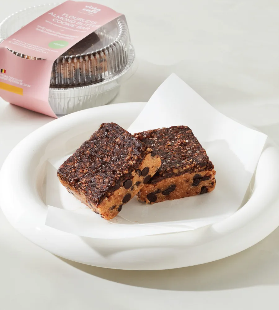 คุกกี้บาร์วีแกน อัลมอนด์บัตเตอร์และช็อกโกแลตชิป : สูตรไร้แป้ง