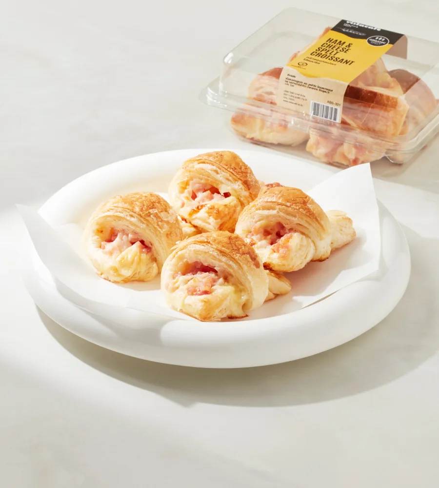 ครัวซองค์แป้งสเปลท์ออร์แกนิกจากประเทศเยอรมนี เราใช้เนยสด ไม่มีมาการีน ไม่ใส่สารกันเสีย ครัวซองค์แฮมชีสเพื่อสุขภาพที่แสนอร่อยด้วยผสมพิเศษของเชดดาร์ชีสแท้และโทสแฮม เวลาทานเพิ่มความหอมกรอบด้วยการใส่เตาอบหรือกริลกับกะทะสักครู่จะเพิ่มความอร่อยมากยิ่งขึ้น