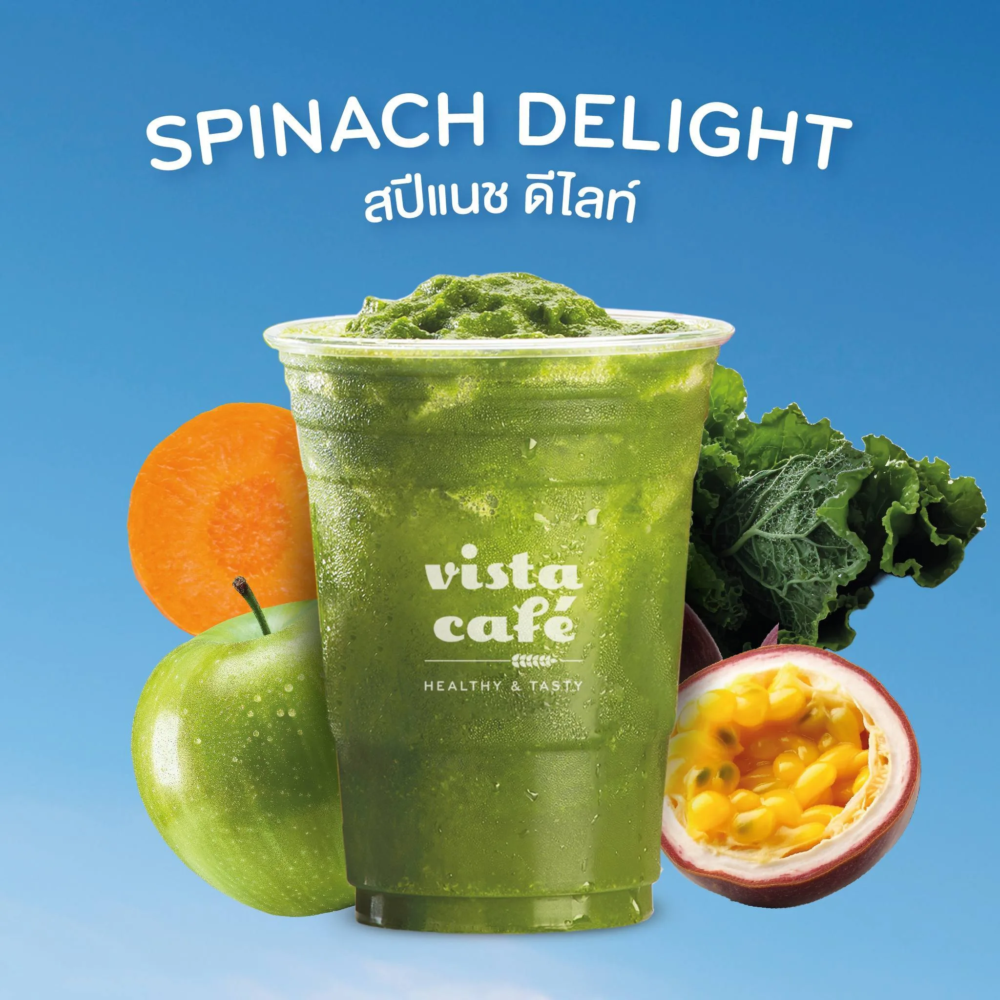 - ผักโขมสด - แครอท - เสาวรส - แอปเปิ้ลเขียว - แฟลกซ์ซีดออร์แกนิก - น้ำผึ้งแท้ 100% - Booster : ฟรุกโตโอลิโกแซคคาไรด์