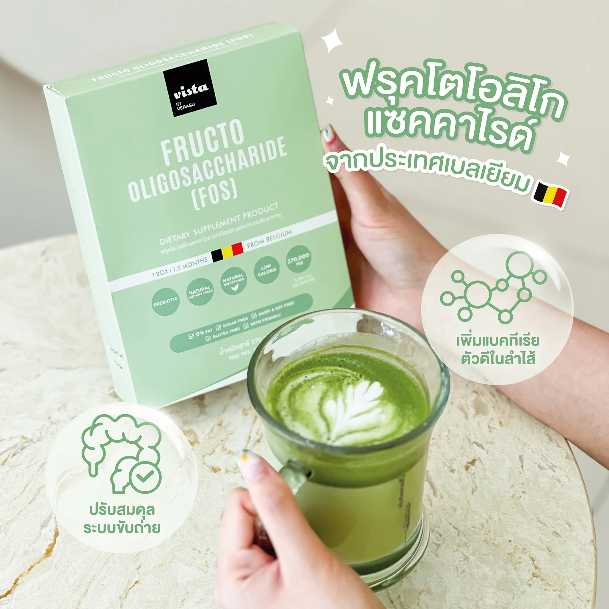 เป็นพรีไบโอติก (Prebiotic)ช่วยเพิ่มประสิทธิภาพของระบบย่อยอาหาร โดยเพิ่มปริมาณแบคทีเรียที่ดีในลำไส้ใหญ่ เพิ่มภูมิต้านทานในลำไส้ให้ดีกว่าเดิม มีผลช่วยป้องกันมะเร็งลำไส้ใหญ่ ช่วยเสริมสร้างการดูดซึมเกลือแร่ได้เพิ่มขึ้น เช่น แคลเซียม แมกนีเซียม เหล็กและป้องกันฟันผุได้ ใยอาหารจากธรรมชาติจากหัวชิโครี 100% (Chicory) ลักษณะปรากฎเป็นผงสีขาว มีความหวานเพียงเล็กน้อย ละลายน้ำได้ดี ในน้ำอุ่นหรือน้ำอุณหภูมิปกติ (25 องศาเซลเซียส)
